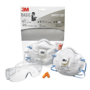 Waarborg je veiligheid tijdens het klussen met de 3M veiligheidsset. De set bestaat uit een stofmasker, een veiligheidsbril en oordopjes.