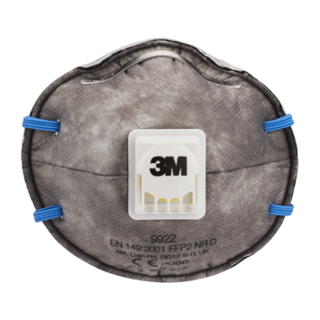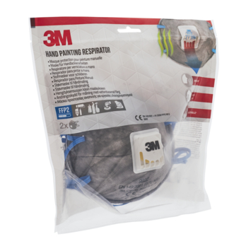 Het 3M™ Stofmasker voor handmatig schilderen 9922 is ons geventileerde gelaatsmasker met filter dat is voorzien van een robuuste vormvaste schaal, een verstelbare neusbeugel, kleurgecodeerde hoofdbanden en het 3M™ Cool Flow™ uitademventiel voor comfortabel dragen. Het is FFP2-geclassificeerd en verkrijgbaar in een verpakking van 2 stuks.