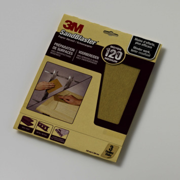 3M Sandblaster biedt flexibele schuurmiddelen aan met een hoge doeltreffendheid, zodat jij efficiënter kan werken. Het schuurpapier met een medium korrel 120 (3 vellen) is geschikt voor het voorbereiden van gemiddeld ruwe, kale ondergronden.