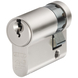 De 2 sterren SKG halve cilinder van ABUS heeft 6 sluitstiften en 8 hardstalen elementen. Geleverd met 3 sleutels met langere hals t.b.v. dikte van veiligheidsbeslag.