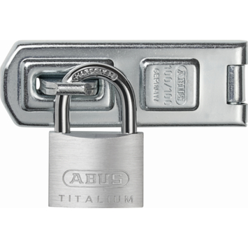 Met het hangslot 54 Titalium kunt u allerlei zaken beveiligen tegen diefstal. De slotkast is gemaakt van massief TITALIUM™ speciaal aluminium, waardoor het bijzonder licht is, maar toch robuust. De beugel van gehard staal biedt een goede basisbeveiliging omdat het aanvallen - bijvoorbeeld met een betonschaar of koevoet - bemoeilijkt. Deze set wordt geleverd inclusief de massieve overval 100. Deze is robuust, weerbestendig en houdt een hangslot veilig en betrouwbaar vast. Dankzij de ogen van gehard staal en de verborgen pennen en schroeven is de grendel 100 bovendien zeer diefstalbestendig.