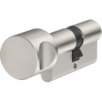 De 2 sterren SKG cilinder van ABUS heeft een knop aan de binnenkant voor extra comfort en snelle sluiting. De cilinder heeft 6 sluitstiften per zijde en een goede boorbeveiliging: 8 hardstalen elementen per zijde. Geleverd met 3 sleutels met langere hals t.b.v. dikte van veiligheidsbeslag.