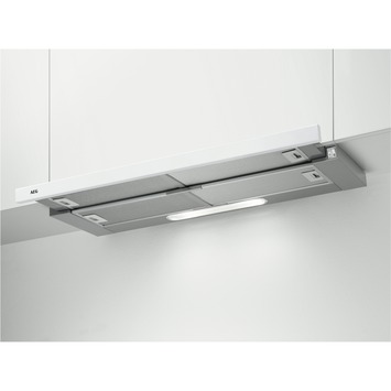 De telescopische dampkap DPB0900W van AEG is een discrete afzuigkap van 90 centimeter breed die alleen zichtbaar is als je 'm gebruikt, omdat de dampkap is verborgen in de units boven je kookplaat. Daarnaast kan je 'm makkelijk open trekken om de afzuiging tijdens het koken te activeren, en terug op zijn plaats duwen na gebruik. Goed om te weten: deze telescopische dampkap DPB0900W heeft een energie-efficiëntieklasse A.