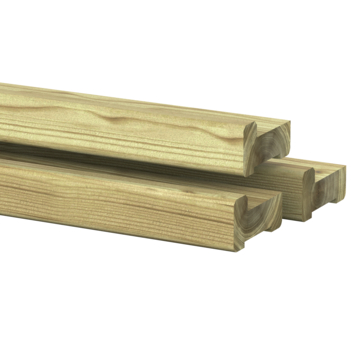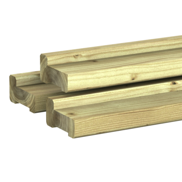 De profielen zijn gemaakt van grenenhout en vacuümdruk geïmpregneerd met Tanalith E volgens een KOMO-gecertificeerd proces. Dit helpt om het hout te beschermen tegen (oppervlakte)schimmels. Door de afgeschuinde zijde en de groef aan de onderkant kan water vlot weg. De balken zijn geschaafd, op maat te zagen en kops te verlengen.