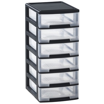 Een opgeruimd bureau? Schakel het Babel ladenblok van Allibert in. Het zwarte ladenblok met 6 lades heeft een praktisch A4-formaat, waardoor hij ideaal is voor het opbergen van papierwerk. Daarnaast is het ladenblok makkelijk verplaatsbaar, omdat het uit een lichte kunststof bestaat. Tot slot bevat het blok een uniek blokkeersysteem, zodat de lades er niet uit kunnen vallen.