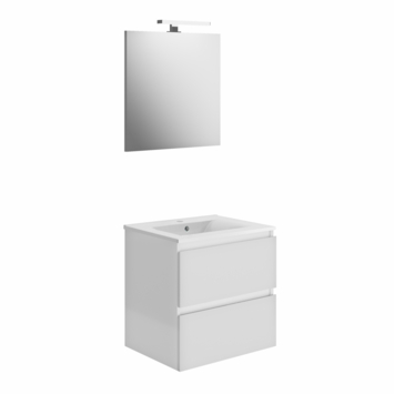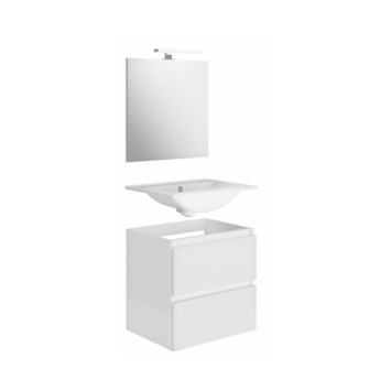 Het Allibert badkamermeubel Livo is een alles-in-één pakket! Dit glanzend wit meubel van 60 cm breed heeft twee lades met geïntegreerde handgrepen en schuin afgewerkte randen. Verder bestaat deze badkamermeubelset uit een witte porseleinen wastafel, een rechthoekige spiegel en LED-verlichting. Alles is klaar om uw badkamer snel en gemakkelijk uit te rusten.
