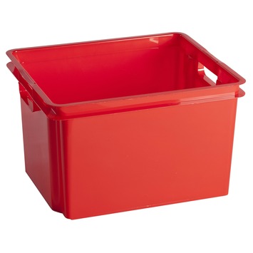 De Crownest opbergbox (30 l) van Allibert is nestbaar en stapelbaar. Hij heeft handige handgrepen, zodat je de box ook gevuld makkelijk kan verplaatsen. De box is gemaakt uit een harde kunststof die eenvoudig schoon te maken is. Verkrijgbaar in verschillende kleuren, waaronder rood, zodat hij in elk interieur past.
