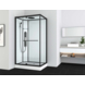 De Allibert douchecabine La Paz 120x90cm is een complete douchecabine voor plaatsing in een hoek. De cabine is rechthoekig en heeft één ruime draaideur waarmee er een frontale instap wordt gecreëerd. De volledige douchecabine is eenvoudig te installeren met een clipsysteem. Hierdoor zijn er geen schroeven nodig, hoeft er niet geboord te worden en is de installatie siliconenvrij. De cabine heeft transparant gehard glas van 5mm dik aan de buitenzijde en heeft 4mm dikke witte wanden aan de muurzijde. De Allibert douchecabine La Paz is dankzij de antikalkbescherming onderhoudsvriendelijk. De douchecabine is afgewerkt met vlakke zwartgelakte aluminium profielen en een zwarte handgreep. Binnenin de cabines bevindt zich een zwart gelakt bedieningspaneel voorzien van hydromassagestralen en mechanische keuzemixer. De bijgeleverde handdouche heeft 3 standen. Er bevindt zich ook een douchekop van 25cm in het witte dak. De Allibert douchecabine La Paz 120x90cm is 225cm hoog en heeft 2 jaar garantie.