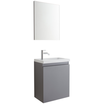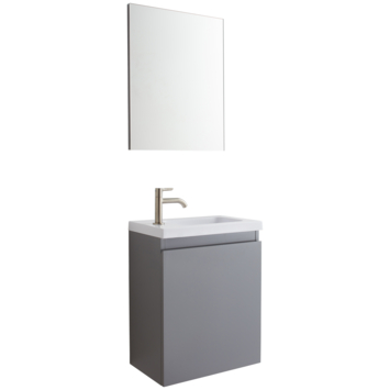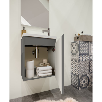 In de kast is er voldoende opbergruimte voor je toiletspullen. Het kastdeurtje is voorzien van een soft-close systeem waardoor de deur altijd zachtjes sluit. Het polybeton materiaal van de wastafel zorgt ervoor dat deze minder snel scheurt dan keramiek, als er per ongeluk iets in valt. De wastafel van 40,2 cm breed en 25,2 cm lang is voldoende groot voor de ochtend- en avondrituelen aan de wastafel. Ook de spiegel van 51 cm hoog geeft ruim zicht op je dagelijkse verzorging.