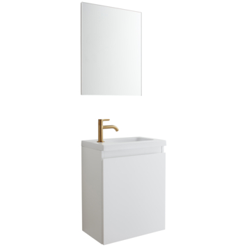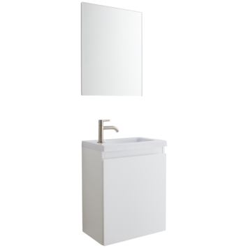 In de kast is er voldoende opbergruimte voor je toiletspullen. Het kastdeurtje is voorzien van een soft-close systeem waardoor de deur altijd zachtjes sluit. Het polybeton materiaal van de wastafel zorgt ervoor dat deze minder snel scheurt dan keramiek, als er per ongeluk iets in valt. De wastafel van 40,2 cm breed en 25,2 cm lang is voldoende groot voor de ochtend- en avondrituelen aan de wastafel. Ook de spiegel van 51 cm hoog geeft ruim zicht op je dagelijkse verzorging.