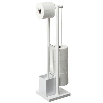 Geen afzonderlijke WC-rol-houder, WC-borstel en stang voor reserve WC-rollen, maar alles in één! Tijdens het stofzuigen of kuisen kan je het met één hand even opheffen en meteen weer op zijn plaats zetten, een gemak! Een moderne look die past in elk toilet!