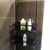 Om toch maar niet in onze nieuwe douchewand te boren, opteerde mijn schoonvader mij om een hangrekje aan te schaffen. Dit was een geweldig idee! Het rekje hangt zeer stevig en is groot genoeg om onze productjes op te zetten.