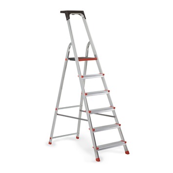De aluminium huishoudtrap met 6 treden van Altrex heeft alles wat je van een huishoudtrap mag verwachten. De veilige trapladder is licht maar stevig en stabiel. Je kan 'm makkelijk open- en dichtklappen, waardoor je 'm minstens even makkelijk kan opbergen. Deze Lima trapladder met 6 treden heeft antislip treden van 53 centimeter breed, een uitgeschoven lengte van 225 centimeter en daardoor een werkhoogte van 320 centimeter. De Lima trapladder is bij GAMMA ook verkrijgbaar met 4 of 5 treden. Extra troef? Het plaform, waarop je makkelijk je emmer water of je pot verf kan zetten.
