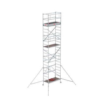 De RS TOWER 34 is een lichtgewicht kamersteiger. Geschikt voor buiten. Ideaal voor binnen door zijn compacte formaat. Wil je ooit hoger komen? Het systeem is modulair. Met module 2 en 3 bouw je hem op tot wel 7.80 werkhoogte. Deze kamersteiger is gemaakt voor de intensieve klusser. Ook is het toegestaan de steiger voor professionele klussen te gebruiken. De maximale belasting bedraagt 150 kg/m2.