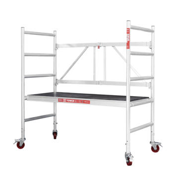 Compacte steiger, vooral ook gemakkelijk voor het werken binnenshuis. De steiger is gemakkelijk verplaatsbaar en past door de deuren. Daarnaast is dit model door zijn maten goed in de meeste personenauto’s te vervoeren