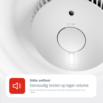 - Unieke stille testfunctie. Discreet testen op een lager volume in vergelijking met standaard rookmelders.