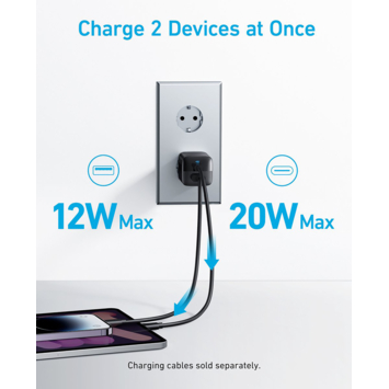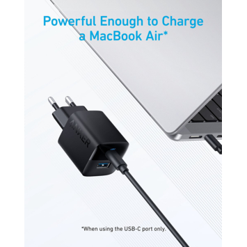 De Anker 323 USB-C dual snellader zwart is een compacte oplader waarmee je twee apparaten tegelijk kunt opladen. Dankzij de 33W USB-C Power Delivery-poort laad je telefoons, tablets en andere apparaten tot drie keer sneller op dan met een standaardoplader. Naast de USB-C-poort heeft de lader ook een USB-A-poort, zodat je flexibel verschillende apparaten kunt aansluiten.
