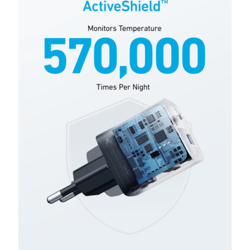 Het compacte ontwerp maakt de oplader makkelijk mee te nemen in je tas of jaszak, handig voor onderweg of op reis. Voor extra veiligheid is de lader uitgerust met het ActiveShield-systeem, dat de temperatuur en het vermogen continu in de gaten houdt. Zo worden je apparaten beschermd tijdens het opladen en blijft de lader betrouwbaar in gebruik.