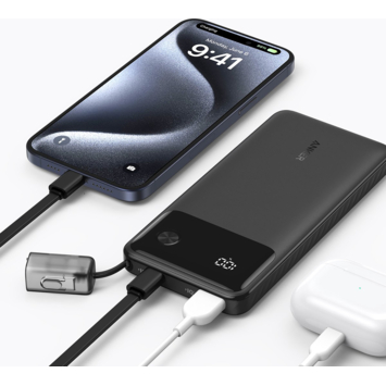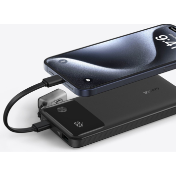De Anker powerbank snelladen 10.000 mAh zwart is een lichte en compacte oplossing om onderweg altijd extra energie bij de hand te hebben. Ondanks het slanke ontwerp biedt de accu genoeg capaciteit om je telefoon of andere apparaten meerdere keren op te laden. Met een vermogen tot 22,5 watt ondersteunt de powerbank diverse snellaadtechnieken zoals Power Delivery (PD), Quick Charge (QC) en SuperCharge Protocol (SCP).