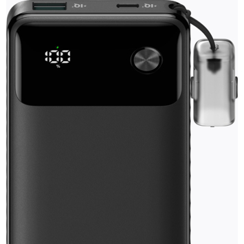 Je sluit tot drie apparaten tegelijk aan via de USB-C en USB-A poorten. De USB-C poort ondersteunt 20W Power Delivery en er is een speciale druppellaadmodus voor kleinere apparaten zoals oordopjes. Dankzij het compacte formaat past de powerbank eenvoudig in je zak of tas, waardoor hij praktisch is voor dagelijks gebruik en onderweg.