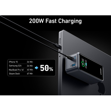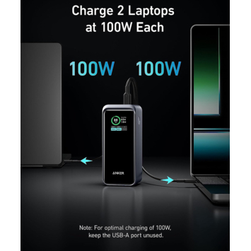 <p><strong>Drie apparaten tegelijk opladen</strong><br/>De Anker Prime powerbank snelladen 20.000 mAh (200W) is een compacte externe accu waarmee je meerdere apparaten tegelijk kunt opladen. Met twee USB-C-poorten van elk 100 watt en een USB-A-aansluiting laad je zelfs twee laptops tegelijk op. Hierdoor is de powerbank geschikt voor krachtige apparaten zoals MacBooks en notebooks, maar ook voor tablets en telefoons.</p>