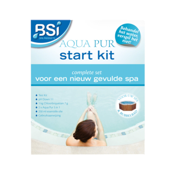 Bij het in gebruik nemen of het onderhoud van je bubbelbad, spa of hot tub moet het water behandeld worden, anders wordt het vuil en onhygiënisch. Om je daarbij optimaal te begeleiden, hebben we deze START KIT ontwikkeld, die alle noodzakelijke producten bevat voor de ingebruikname en het verdere onderhoud. Dankzij de meegeleverde gebruiksaanwijzing leert u snel hoe u een optimale waterkwaliteit kan bekomen en behouden. Veel succes! Inhoud: Test Kit, pH Down 1L, 50 Chloortabletten 20g, 2 x 1L Aqua Pur 5 in 1, 250 ml essentiële olie, gebruiksaanwijzing.
