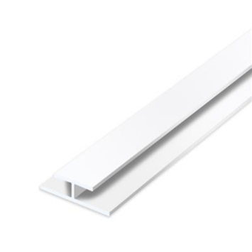 H profiel van 1mm PVC voor het koppelen van (Aqua-Step) wandplaten van 4mm dik. Kleur wit, 260cm lang, 27x4x15mm