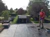 Heel eenvoudig ik deed dit met een oude veegborstel voor de grootte oppervlakte 30vierkante meter en een kleine verf borstel voor de hoekjes en kantjes . Na eerste laag had ik harde regen maar alle lekken waren al dicht na 2 de laag een paar dagen later ziet mijn platdak er als nieuw uit