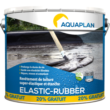Met Aquaplan Elastic Rubber dakcoating waterdicht 10 kg + 20% gratis herstel je eenvoudig oude en beschadigde bitumineuze daken. De coating heeft uitstekende elastische eigenschappen en vormt na droging een taaie en flexibele laag. Deze rubberbekleding is bestand tegen chemische aantasting, atmosferische vervuiling en temperatuurschommelingen, waardoor je dak goed beschermd blijft.