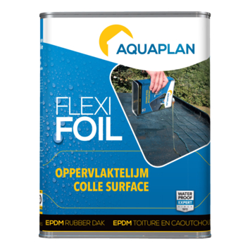 De Aquaplan Flexifoil oppervlaktelijm (2 kg) is een gebruiksklare lijm voor het verlijmen van FlexiFoil EPDM folie aan het platte dakoppervlak tot 15 cm van de dakopstand. Deze hechtlijm is eenvoudig met één kant aan te brengen op verschillende ondergronden zoals hout, bitumen, beton en glasvlies-gecacheerde PIR isolatieplaten. Het grote voordeel is dat je de FlexiFoil EPDM folie nog kunt corrigeren na plaatsing. De lijm kan in rilvorm of volledig worden aangebracht.