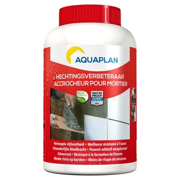 De hechtingsverbeteraar van Aquaplan in de kleur wit (1 liter) verbetert de hechting tussen je tegels en de vloer of muur die je wil betegelen. De verbeteraar heeft een verhoogde slijtvastheid, een uitzonderlijke kleefkracht en is bovendien scheurvast, wat het risico op scheuren in je wanden aanzienlijk vermindert.