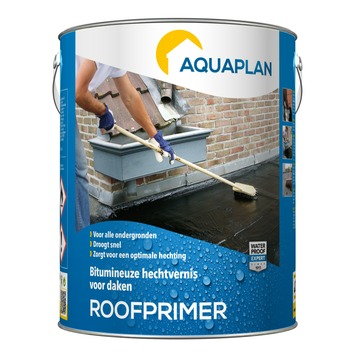 Wil je ervoor zorgen dat jouw bitumineuze dakrollen of dakcoating nog beter aan de ondergrond hechten? Gebruik dan de Aquaplan roofprimer hechtlaag 4 liter. Dit vernis is sneldrogend en fixeert achtergebleven stof en losse stukjes en is op alle, zelfs licht vochtige, ondergronden toe te passen. Deze primer kan je overigens ook gebruiken als voorbehandeling van aluminium regenwaterafvoeren om ze daarna compleet af te werken. Aquaplan roofprimer dringt diep door in het materiaal en droogt in zeer korte tijd, zodat je snel verder kunt gaan met klussen. Kortom: ideaal voor een krachtige hechting van je bitumineuze dakrollen of dakcoating. Bij het aanbrengen van een nieuwe bitumineuze eindlaag op een oude dakrol is het gebruik van een primer noodzakelijk.