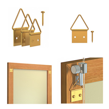 Uitstekende haakjes om fotolijsten op te hangen, ik gebruik niet altijd de bijgeleverde draad nagels in plaats ervan verlijm ik ze met Bison secondelijm.