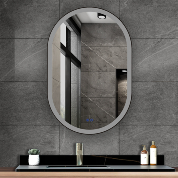Met een afmeting van 90 cm hoog en 60 cm breed biedt deze ovale spiegel niet alleen een stijlvol accent voor elke moderne badkamer, maar ook functionele voordelen die dagelijks comfort verhogen. De zwarte aluminium rand voegt een vleugje tijdloos design toe en staat garant voor duurzaamheid en roestbestendigheid, zelfs in vochtige ruimtes.