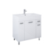 Het Emin badmeubel van 80 cm met Kyra wastafel brengt overzicht in je badkamer. Met drie deuren en één lade berg je handdoeken en verzorgingsproducten makkelijk op, terwijl de pootjes de kast van de vloer houden voor een makkelijke reiniging. De keramische wastafel biedt genoeg plaats voor je dagelijkse routine en laat aan de muurzijde ruimte voor je dagelijkse spullen. Het meubel is eenvoudig te plaatsen en voelt stevig aan, ideaal voor wie zijn badkamer snel wil opfrissen of vernieuwen. Het tijdloze wit past in elke badkamerstijl en blijft mooi na intensief gebruik.