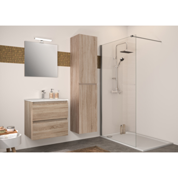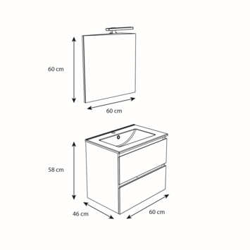 De Atlantic by Allibert badmeubelset Emma 60 cm 2 lades hout bestaat uit een hangende onderkast met wastafel, spiegel én verlichting. Dit meubel is vervaardigt uit gelamineerd MDF en bestaat in het wit en hout. Je kan ook kiezen tussen een onderkast met laden of deurtjes! Er zijn twee afmetingen verkrijgbaar, nl. 60 cm en 80 cm. Vergeet ook niet te kijken naar de brede bijpassende kolomkast voor dit meubel.