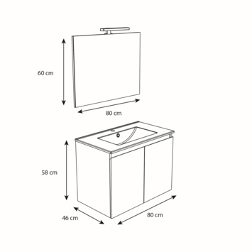 De Atlantic by Allibert badmeubelset Emma 80 cm 2 deurs hout bestaat uit een hangende onderkast met wastafel, spiegel én verlichting. Dit meubel is vervaardigt uit gelamineerd MDF en bestaat in het wit en hout. Je kan ook kiezen tussen een onderkast met laden of deurtjes! Er zijn twee afmetingen verkrijgbaar, nl. 60 cm en 80 cm. Vergeet ook niet te kijken naar de brede bijpassende kolomkast voor dit meubel.