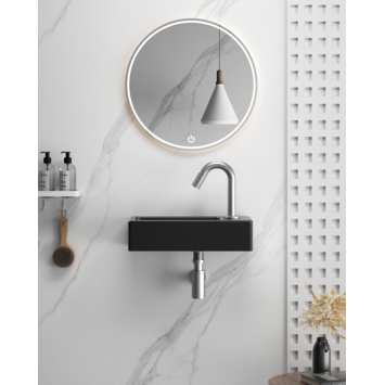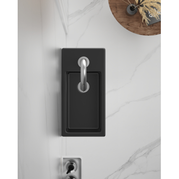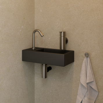 De Atlantic handenwasserset Billy is gemaakt van zwart mat keramiek en is ideaal voor de kleine badkamer of toiletruimte. Door deze wasbak in een hoek te plaatsen kun je ruimte besparen, maar hij staat ook prima op een vlakke wand. De handenwasserset komt met kraan, sifon, afvoerplug en het benodigde bevestigingsmateriaal. De kraan, sifon en afvoerplug hebben een stijlvolle RVS-kleurige buitenlaag. Bij dit model zit het kraangat, met kraan, aan de rechterkant van de wasbak. De Atlantic handenwasserset Billy zwart keramiek mat rechts 37,5x18,5x9,5 cm is eenvoudig te monteren. Op deze handenwasserset geldt 3 jaar garantie. Je kan deze handenwasserset Billy in verschillende kleuren vinden op onze website of in de winkel!