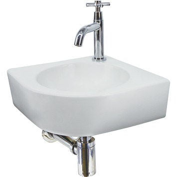 De Avalon handenwasserset van Atlantic is gemaakt van wit keramiek en is eenvoudig in een hoek van 90 graden te plaatsen. Door deze wasbak in een hoek te plaatsen bespaar je ruimte. Deze wastafel is daarom enorm geschikt voor de kleine badkamer of toiletruimte. De handenwasserset komt met kraan, sifon, afvoerplug en de benodigde pluggen en schroeven. De kraan, sifon en afvoerplug hebben een stijlvolle verchroomde buitenlaag. De kraan heeft een karakteristieke greep, die voor een klassieke uitstraling zorgt. De Atlantic Avalon handenwasserset kwartrond keramiek wit is eenvoudig te monteren en komt met 5 jaar garantie. Ook verkrijgbaar in Atlantic Georgia handenwasserset kwartrond natuursteen zwart.