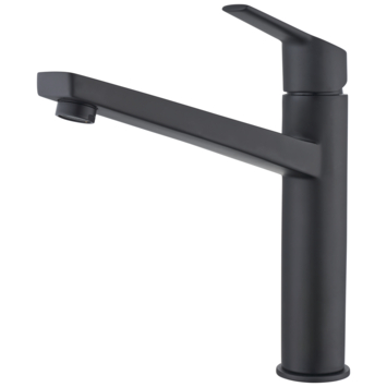 De matte zwarte afwerking zorgt voor een luxe uitstraling, en schoonmaken is eenvoudig. De draaibare uitloop geeft je ruimte bij het afspoelen of koken. De greep ligt prettig in de hand, waardoor je makkelijk water aan- of uitzet en snel wisselt tussen warm en koud water.