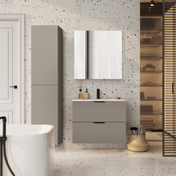 De Figo kolomkast in taupe is een slimme keuze als je meer plaats wil zonder dat je badkamer vol staat. Je hangt hem gewoon aan de muur, zodat je vloer vrij blijft. Dankzij het push-to-open systeem open je de kast met een lichte druk. Binnenin vind je vier planken om al je spullen netjes te schikken. Met zijn compacte formaat (H180 x B40 x D35 cm) past hij in elke badkamer of berging. Inclusief bevestigingsmateriaal, dus je kunt meteen starten. Ontdek de Figo kolomkast en andere badkamermeubelen bij GAMMA en maak je badkamer helemaal af. Voor een harmonieus interieur: combineer de kast met Elena-, Aisa- en Raff-meubels.