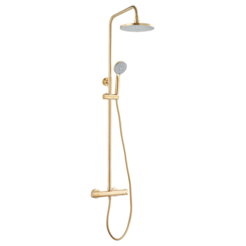 Atlantic regendoucheset Asher met handdouche 3 standen en thermostaatkraan goud - geborsteld PVD - hartafstand kraan 15 cm