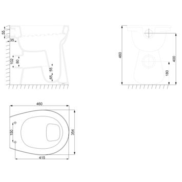 Het Atlantic toilet Kya verhoogd met muuraansluiting (H) bestaat uit een witte staande vlakspoel toiletpot die 6 cm hoger is dan een standaard pot. Met een comfortabele zithoogte van 46 cm worden opstaan en gaan zitten makkelijker. Een toiletzitting is niet meegeleverd, dus je kan je eigen ideale wc-zitting kiezen in onze winkel of op onze webshop.