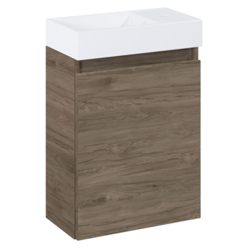 Dit toiletmeubel Imani donker eik met witte wastafel is een model uit de veelzijdige Atlantic Imani meubelserie: dé oplossing voor kleine badkamers en gastentoiletten. Deze stijlvolle, voorgemonteerde meubelcombinatie biedt maximaal comfort en gemak in elke ruimte. Met de geavanceerde softclose deuropening geniet je van een geruisloze ervaring en dankzij de flexibele deurconstructie kun je kiezen voor zowel links- als rechtsdraaiende deuren. Kies uit meerdere elegante afwerkingen: Een klassiek wit meubel of de warme uitstraling van natuur of donker eiken met een witte of zwarte keramische wastafel. De wastafel is links of rechts monteerbaar, zodat deze perfect in jouw ruimte past. Met het eenvoudig te monteren ophangsysteem is de installatie een fluitje van een cent! Ervaar de luxe en functionaliteit van de Atlantic Imani serie en transformeer je badkamer met een meubel dat stijl en praktisch gemak moeiteloos combineert.
