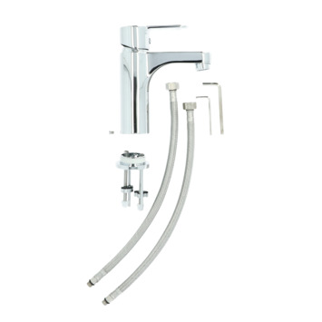 De Atlantic wastafelkraan Parker met hendel Chroom bestaat uit een chromen wastafelkraan van 16,5 cm hoog en 14,1 cm diep met 2 flexibele aansluitslangen van 41 en 42 cm, bevestigingsmateriaal en montagehandleiding. Met de eenhendelbediening draai je met 1 hand de kraan naar de gewenste temperatuur. Je bespaart water door de ingebouwde eco-klik. Deze ingebouwde weerstand in de hendel zorgt ervoor dat je de kraan niet direct op de hoogste straalstand zet. Wens je toch een hardere straal, dan zet je de hendel verder open. De Eco-start laat alleen koud water door de kraan stromen als de hendel in het midden staat, in tegenstelling tot standaard mengkranen waarbij warm water gemengd wordt in de middelste stand. Zo bespaar je naast water door eco-klik dus ook (warmte)energie door eco-start. De kraan heeft een heel gemakkelijk bevestigingssysteem dankzij topfixing: de kraan schroef je daarmee eenvoudig van bovenaf op de wastafel vast. Kalk hecht zich moeilijk vast aan de anti-kalk perlator en je veegt het er makkelijk met de hand af. Deze rechte, strak vormgegeven kraan heeft een moderne uitstraling met een glanzende chromen afwerking. De kraan onderhoud je het best door alleen water en een zachte doek te gebruiken bij het schoonmaken van de kraan. Gebruik geen schurend, bijtend, azijnhoudend of agressief schoonmaakmiddel. Je hebt 5 jaar garantie op deze kraan.