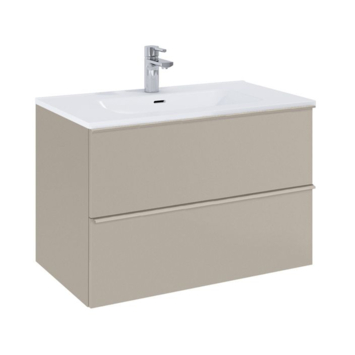 Het Aisa badmeubel van 80 cm taupe biedt overzicht en praktische opbergruimte in je badkamer. Met twee ruime softclose-lades berg je handdoeken, verzorgingsproducten en andere spullen makkelijk op. De lange taupekleurige handgrepen maken openen en sluiten vlot, terwijl het hogere meubel extra ruimte biedt in de lades. Kies zelf een wastafel uit het Kyra- of Skappa-assortiment in zwart, wit of kasjmir en stel je set samen naar eigen stijl. Dankzij de afmetingen van 80 cm breed, 46 cm diep en 63 cm hoog past het meubel in zowel kleinere als grotere badkamers en blijft het functioneel. De taupekleurige afwerking en bijpassende grepen zorgen voor een rustig en modern geheel.