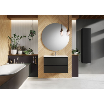 Met het Atlantic badkamermeubel Elena 80 cm in matzwart geef je jouw badkamer een moderne uitstraling. Dit meubel is perfect voor wie houdt van strakke lijnen en functionaliteit. Dankzij de twee ruime softclose-lades heb je altijd voldoende opbergruimte voor al je badkamerbenodigdheden, waardoor alles netjes en georganiseerd blijft. Je kunt zelf de wastafel kiezen die bij jouw stijl past, of dat nu de Kyra of Skappa is, en je hebt de keuze uit verschillende kleuren zoals zwart, wit of kasjmir. Dit meubel is niet alleen praktisch, maar ook een echte blikvanger. Vergeet niet dat de kraan en sifon apart besteld moeten worden, zodat je alles naar jouw wensen kunt samenstellen. Ga aan de slag en creëer jouw ideale badkamerlook!