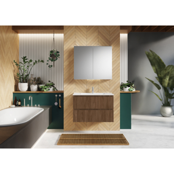Het meubel is praktisch: twee royale softclose-lades bieden voldoende ruimte voor handdoeken, toiletartikelen en verzorgingsproducten. Ze openen vlot en sluiten stil, waardoor je badkamer netjes blijft en het gebruik eenvoudig is. Het formaat biedt extra opbergruimte, ideaal voor zowel kleine als grotere badkamers.