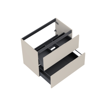 De Atlantic wastafelonderkast Raff in taupe ribbelfront van 80 x 45,2 x 63,5 cm biedt een ruime oplossing met veel opbergruimte. De twee softclose-lades zijn ideaal voor handdoeken, verzorgingsproducten en accessoires. Ze openen soepel en sluiten zacht dankzij het softclose-systeem.