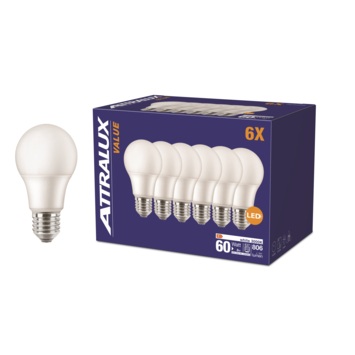 Attralux LED E27 60W 3000K frosted 6 stuks